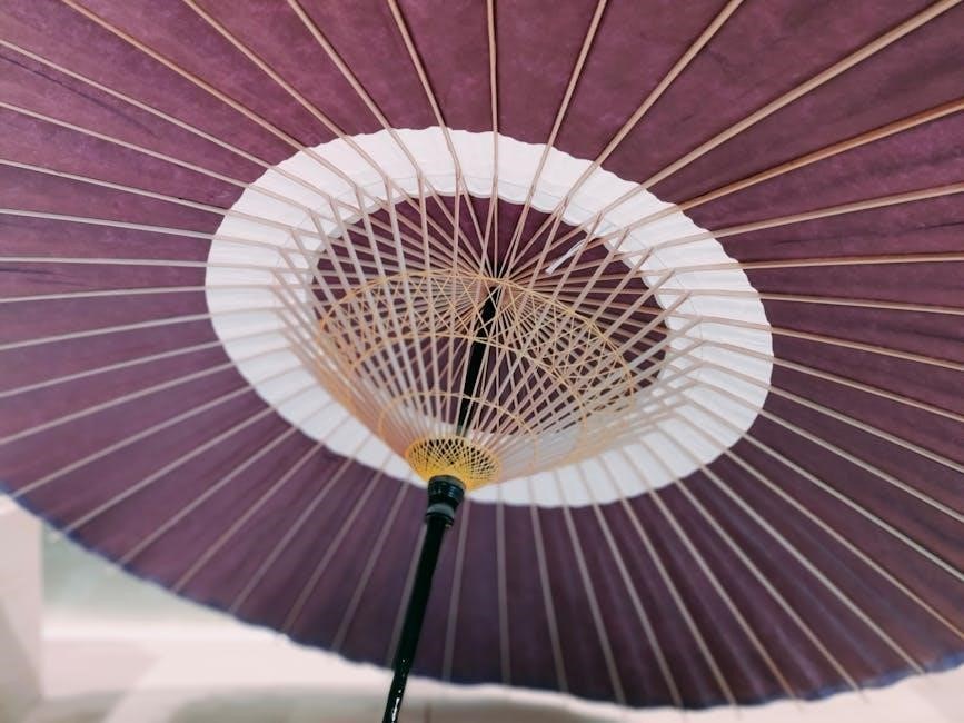 Regular maintenance, detailed in the Purple Leaf PDF manual, ensures your umbrella’s longevity and optimal performance. Cleaning the canopy involves mild soap and water; avoid harsh chemicals that could damage the fabric.